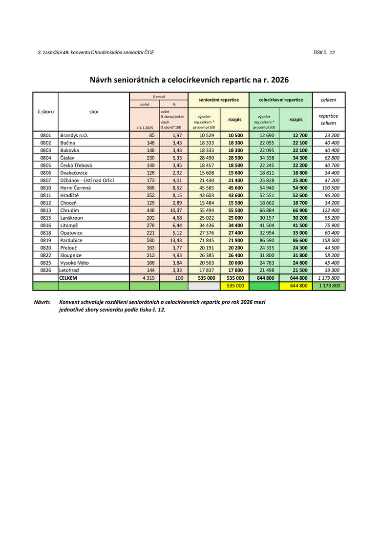 Návrh seniorátních a celocírkevních repartic na r. 2026